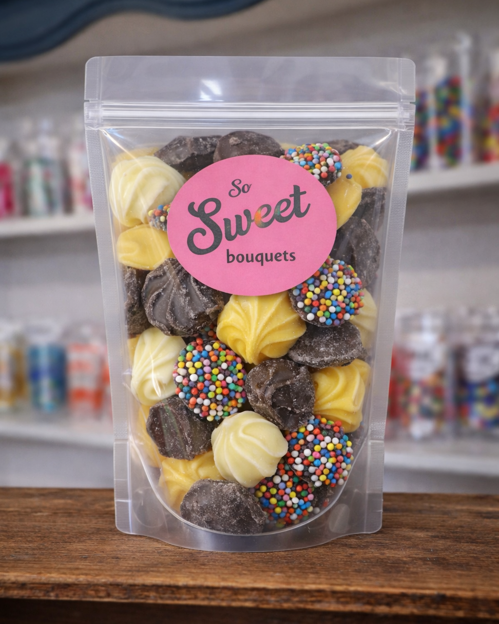 Edible Chocolates or Lolly Bouquets offer a unique, indulgent twist on traditional floral arrangements. Our handcrafted bouquets are not just a feast for the eyes, but a treat for the taste buds, filled with premium chocolates, lollies or themed options that will leave your loved ones smiling. Whether it’s for a birthday, anniversary or just to say thank you, our edible bouquets are the sweet way to show you care.