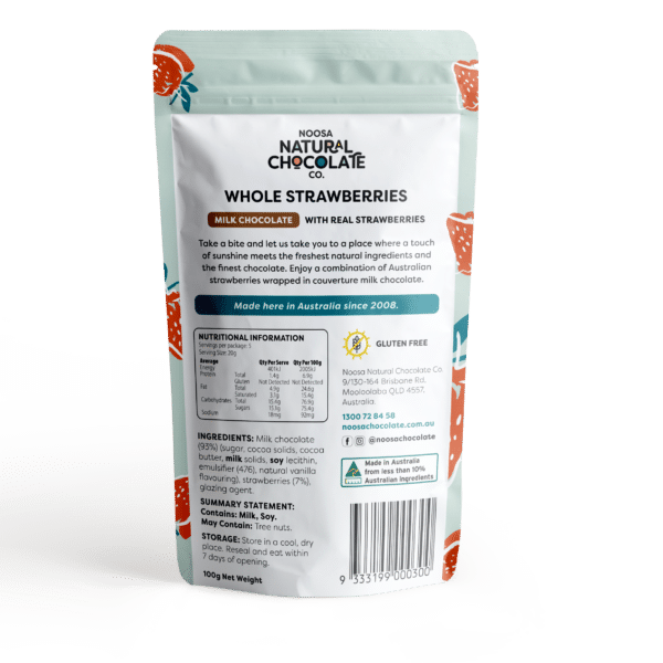 Australian Grown Strawberries Coated in Premium Milk Chocolate (100g)