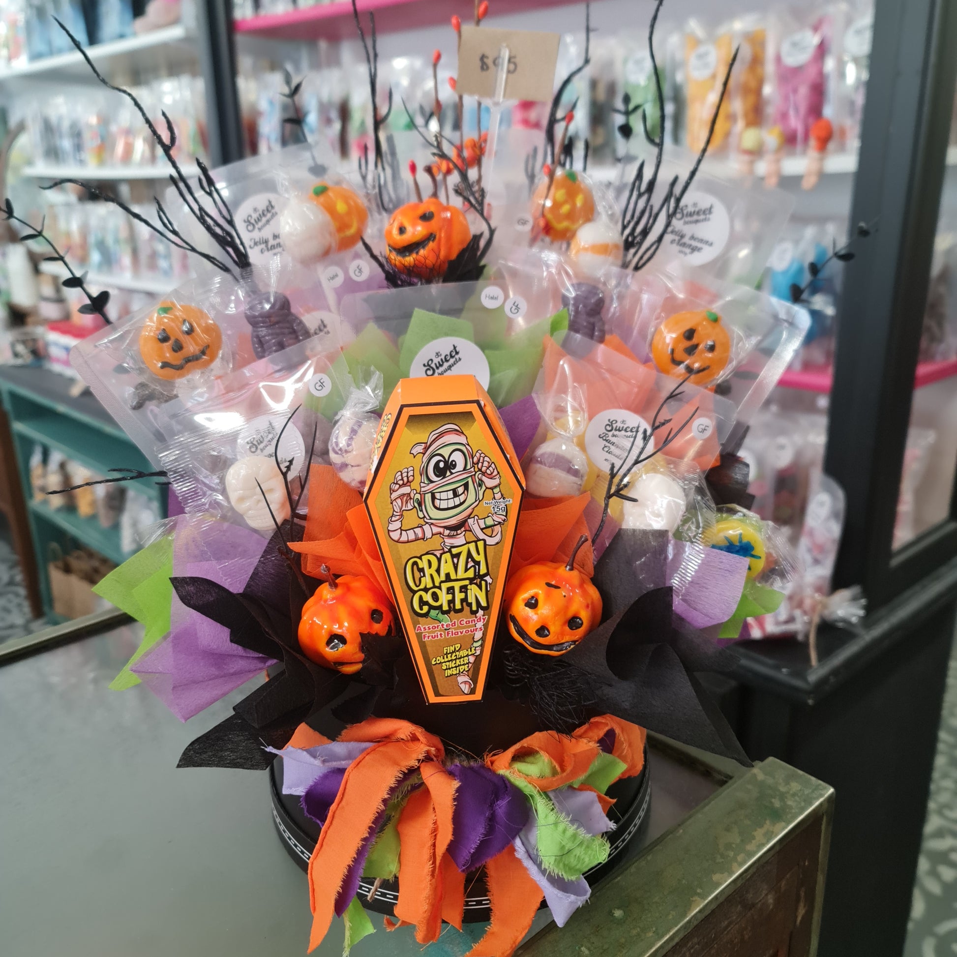 Spooky, sweet, and totally over the top! The Crazy Halloween Lolly Bouquet is packed with a wild mix of colourful lollies, chocolates, and Halloween-themed treats — all arranged in a fun, festive display. Perfect for parties, gifting, or treating your favourite trick-or-treater, it’s a frightfully fun way to celebrate spooky season!