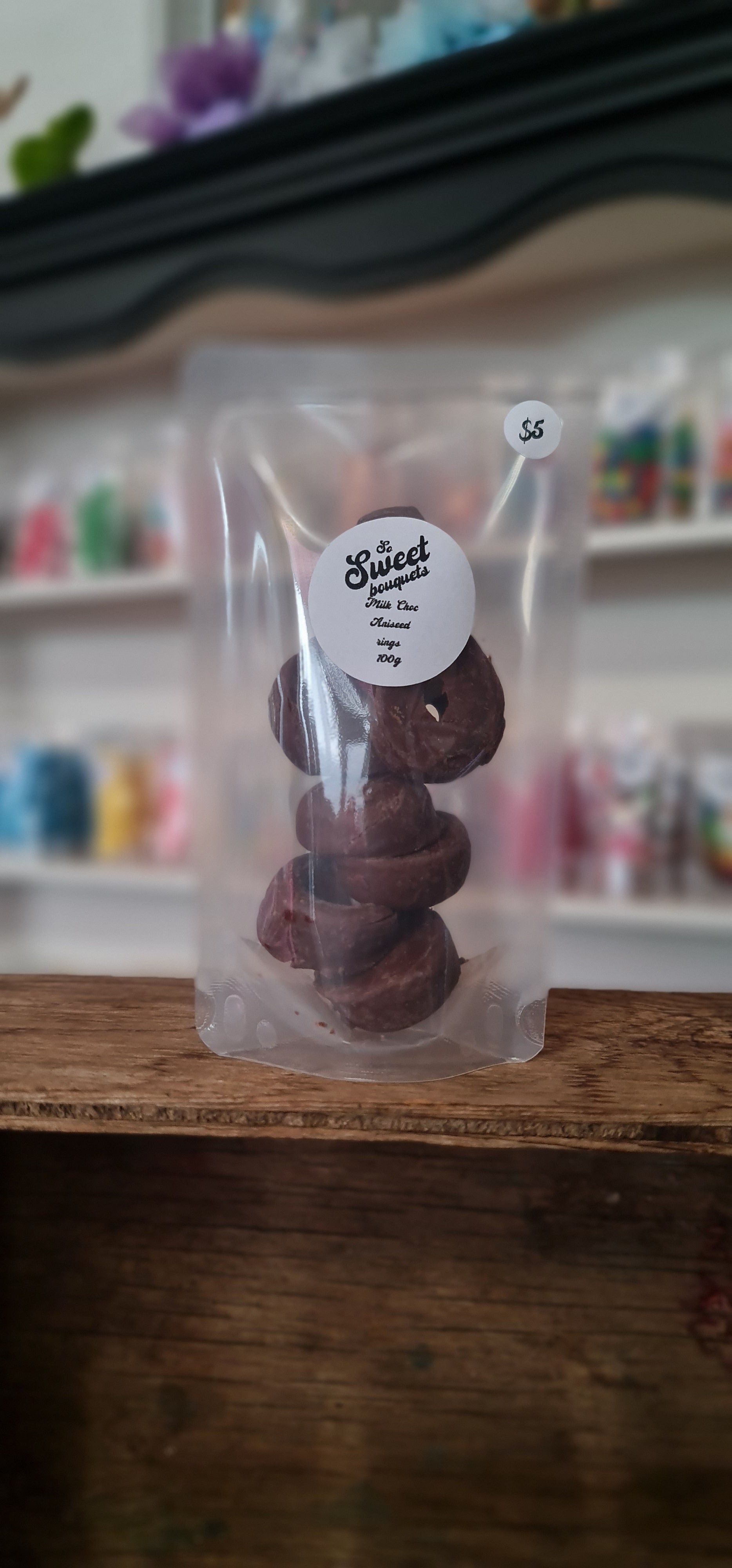 Satisfy your sweet tooth with our Milk Chocolate Aniseed Rings! These indulgent rings are made with rich milk chocolate and the bold flavour of aniseed for a uniquely delicious treat. Perfect for any occasion, these rings will have you saying "just one more" until the bag is empty