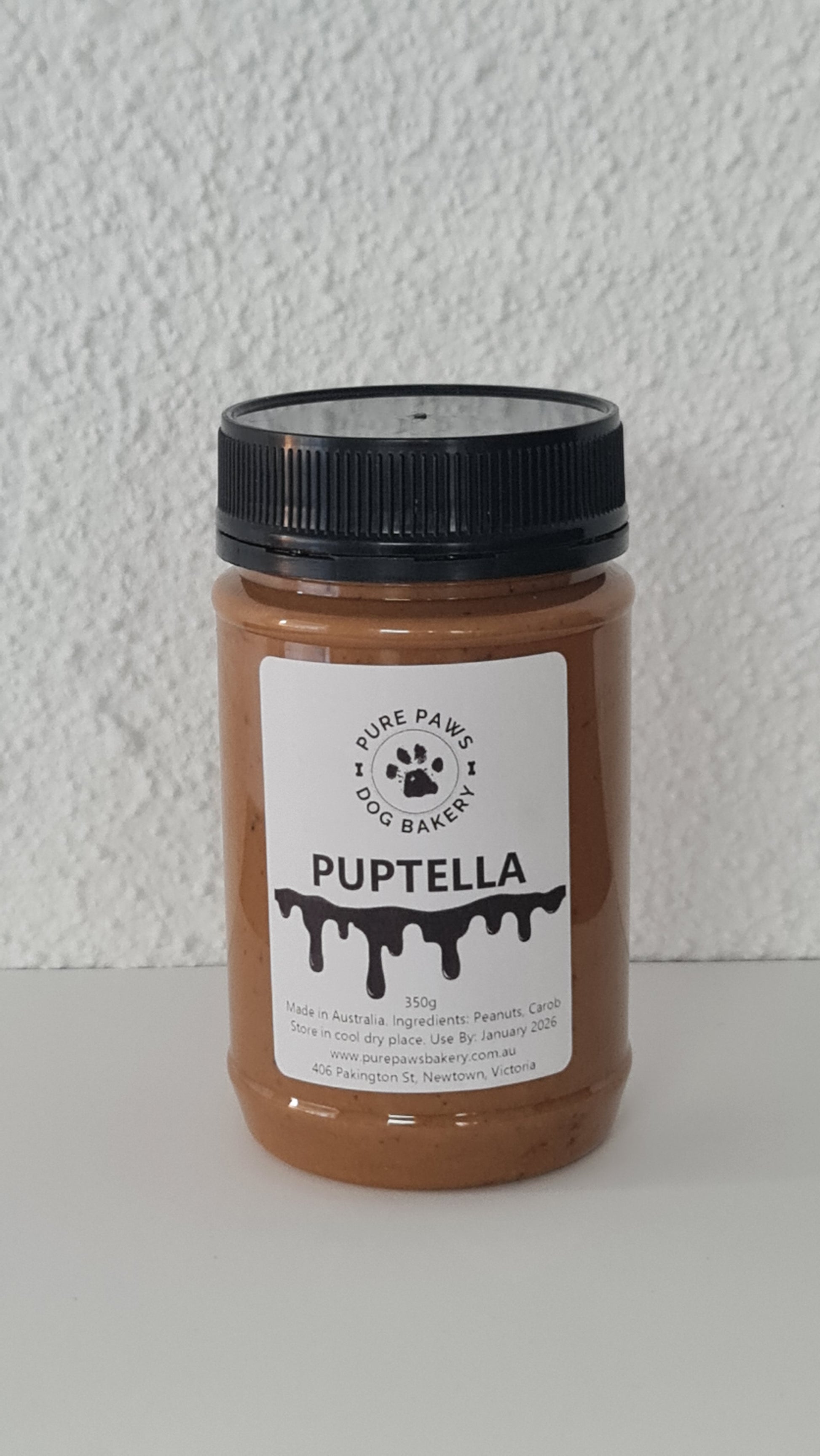 All Natural Puptella for pets. Made in our Geelong doggy bakery from 100% Australian Peanuts and Carob. Use this product to bake dog biscuits, a cake, or ice cream! Also great on a lickimat, kong or inside a beef tube.