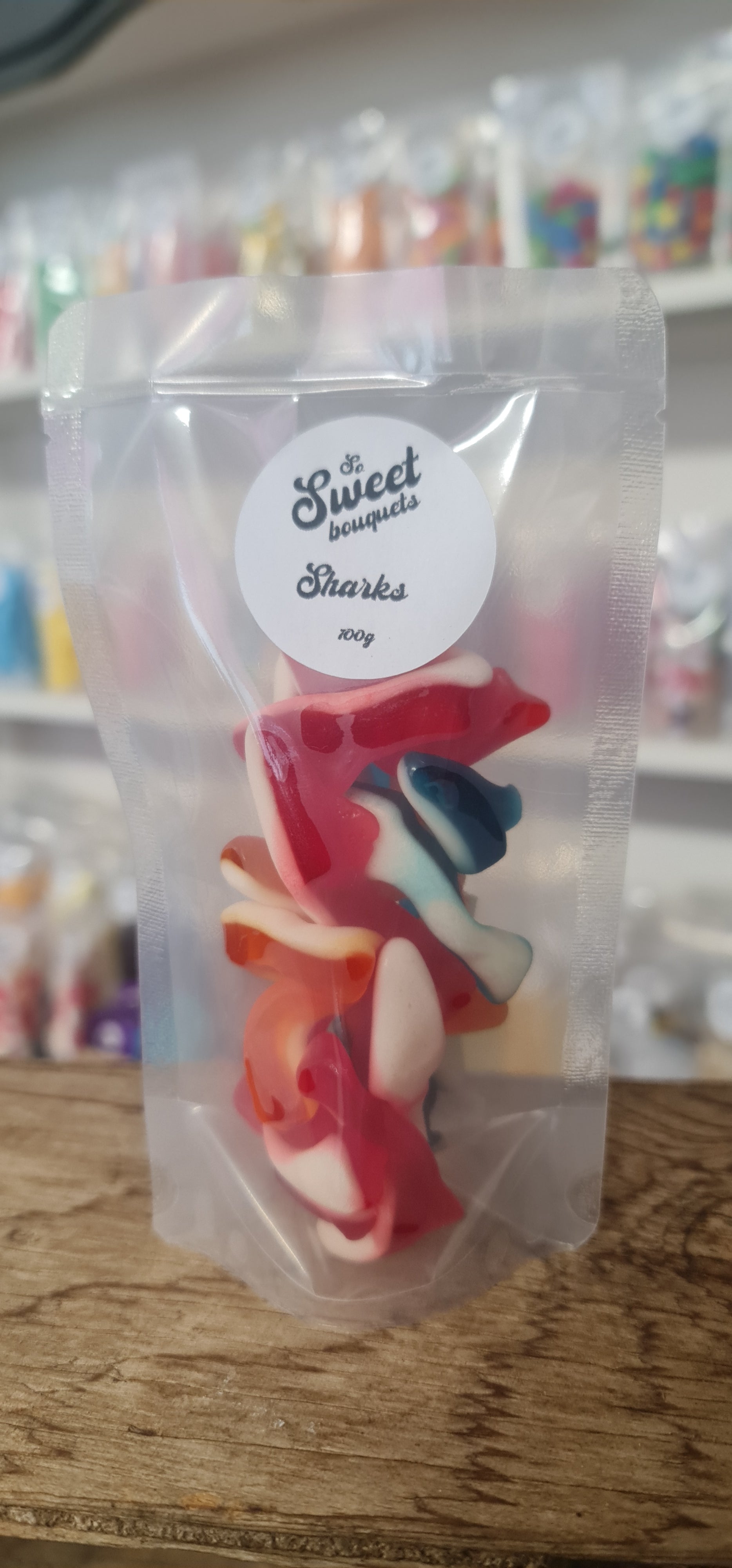 Get your jaws ready to bite into our delicious and chewy Sharks! These gummy treats will have you swimming with joy. No need to fear the ocean, these sharks are made with only the best ingredients. Perfect for a snack on-the-go or a fun addition to any party. (Just don't get too scared of the toothy grins!)