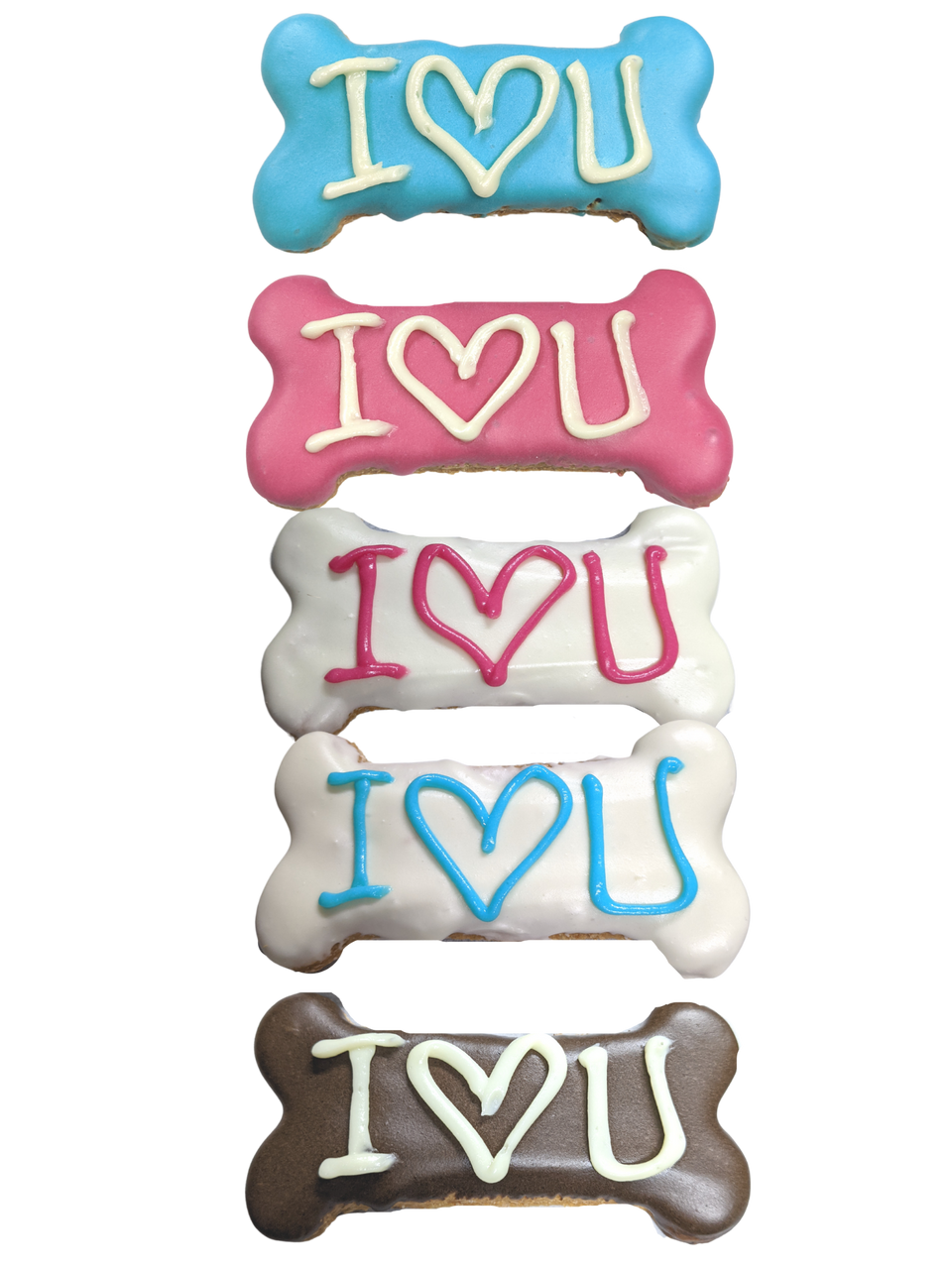 Get ready to express your love for your furry friend with Huds and Toke's Small "I Love U" Bone Cookie! This special treat comes in four delightful variations, each designed to show your pup just how much they mean to you.